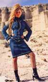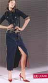 LIU. JO Conjunto vaquero formado por falda larga y cazadora con detalle de pelo en los extremos. Se acompaña de un fino cinturón decorativo a modo de cadena.