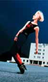 MOSCHINO Agresividad y tendencia en este conjunto formado por camiseta negra de flecos y falda vaquera.